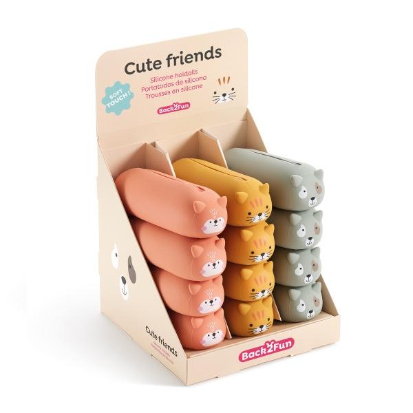 Miquel Rius Back2Fun Animales Cute Expositor con 12 Portatodos de Silicona - 4 de cada Modelo de Animal - Cierre con Cremallera