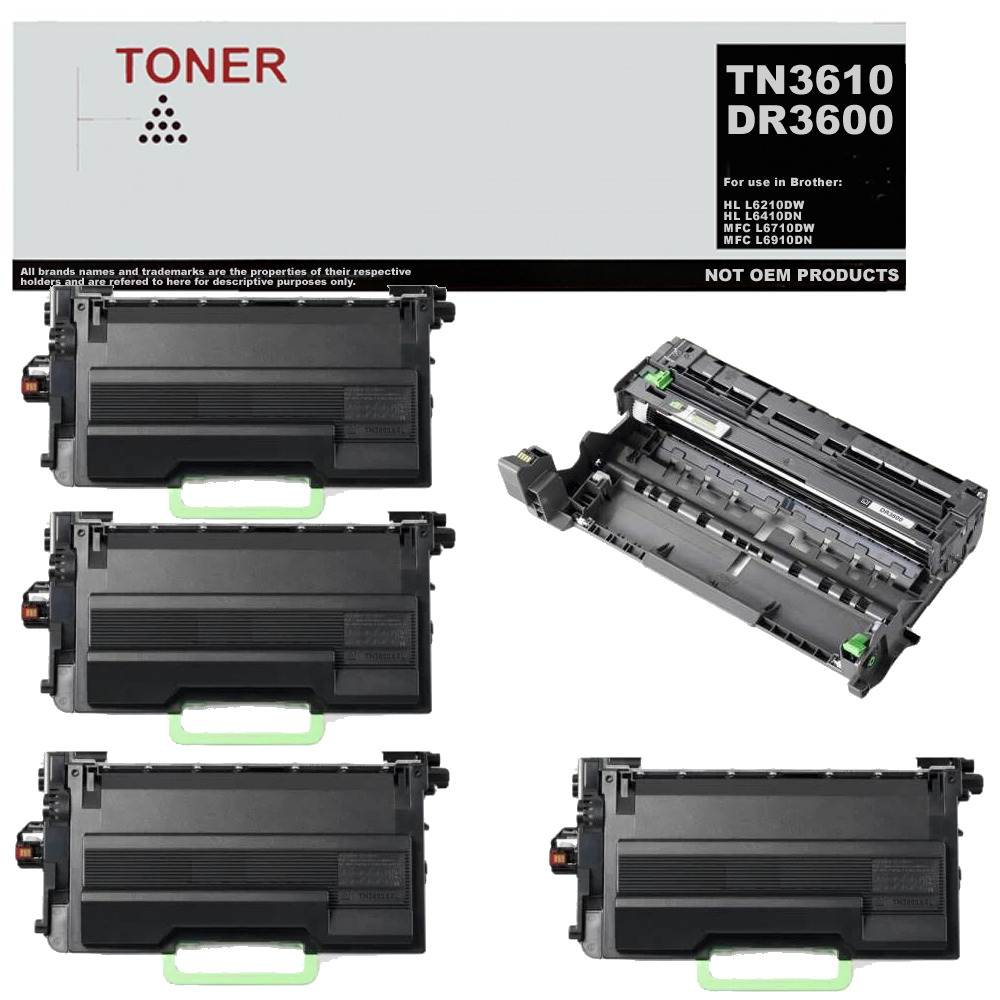 TN3610 / DR3600 pack 4 toner negro y 1 tambor compatible con Brother TN3610 / DR3600.